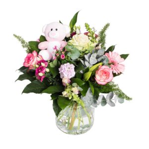 Hoera, een baby op komst! Feliciteer de aanstaande ouders met dit prachtige boeket, inclusief een lieve neutrale Me To You knuffelbeer van 20 cm.