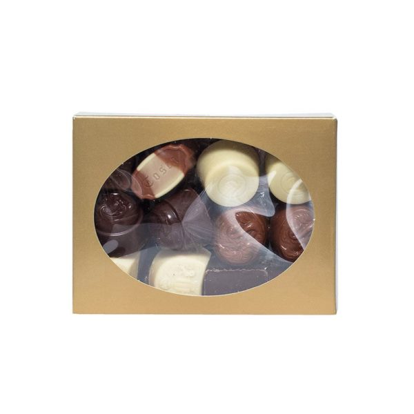 Een heerlijke luxe variatie van wit, melk en pure bonbons. Gemaakt van de fijnste Belgische ‘Callebaut’ chocolade.